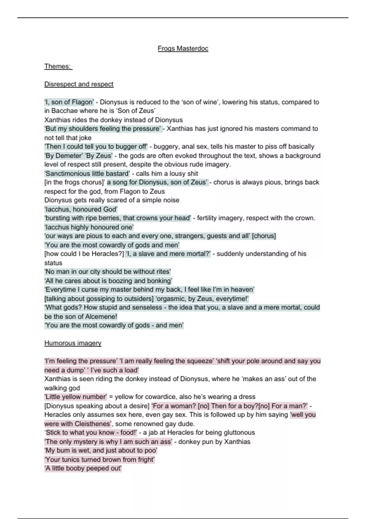 [in the frogs chorus]’ a song for Dionysus, son of Zeus’ - chorus is always pious, brings back