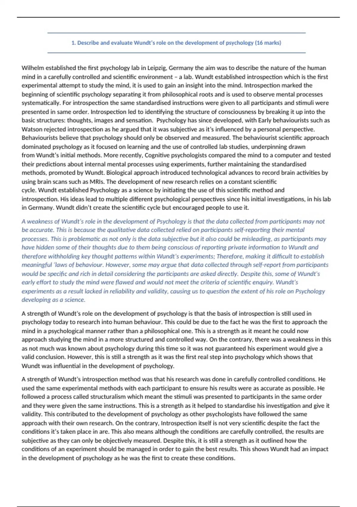 would be specific and rich in detail considering the participants are asked directly. Despite this, some of Wundt’s