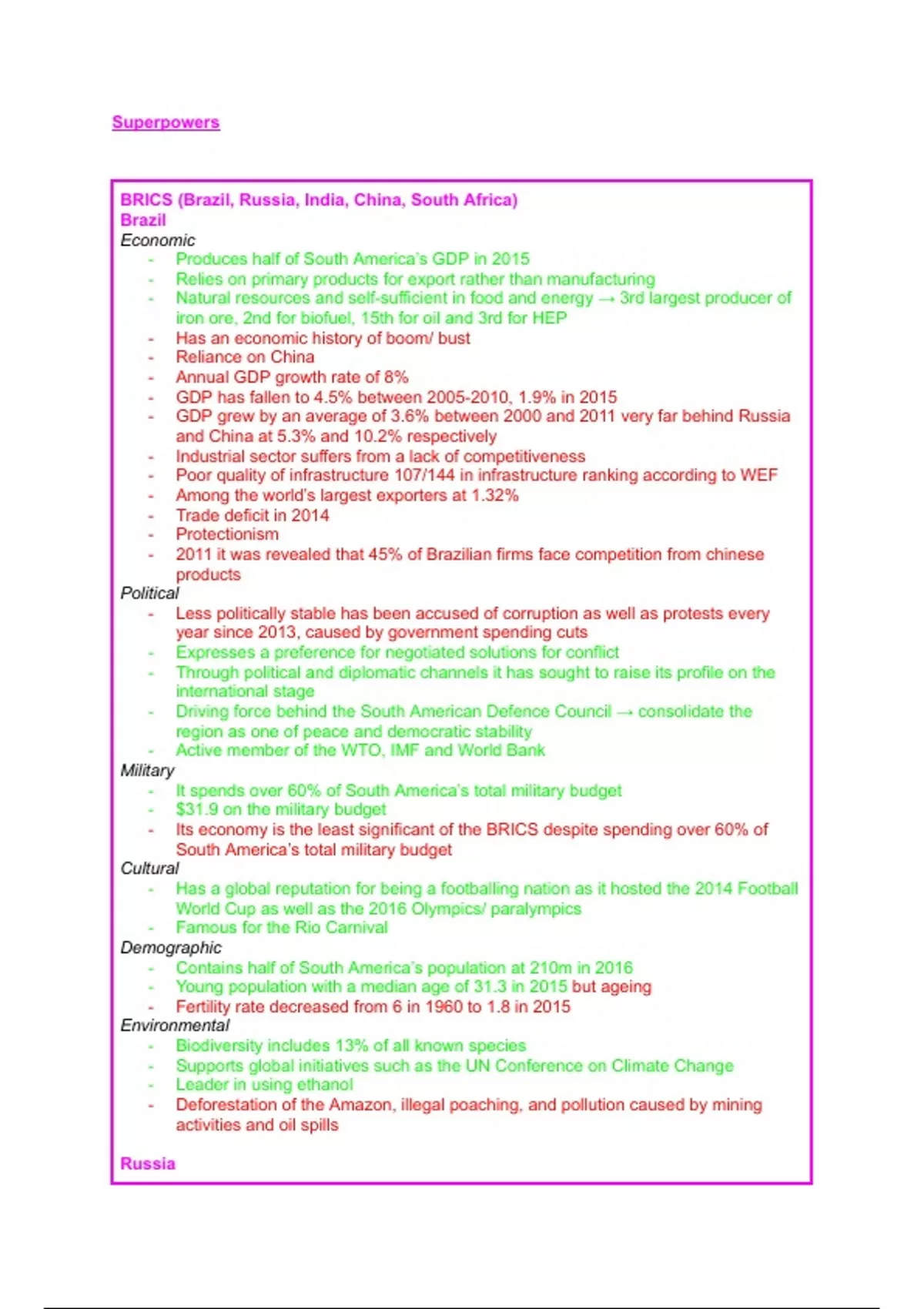 - Its economy is the least significant of the BRICS despite spending over 60% of