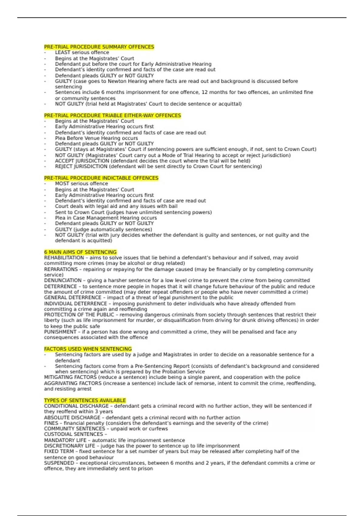 PRE-TRIAL PROCEDURE SUMMARY OFFENCES