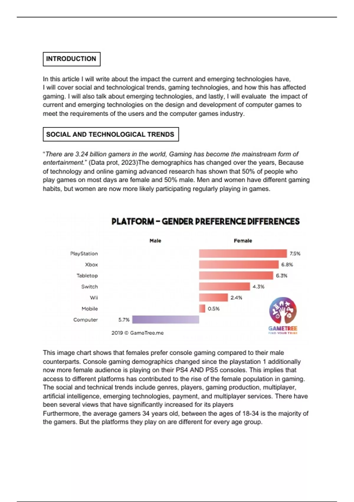 I will cover social and technological trends, gaming technologies, and how this has affected