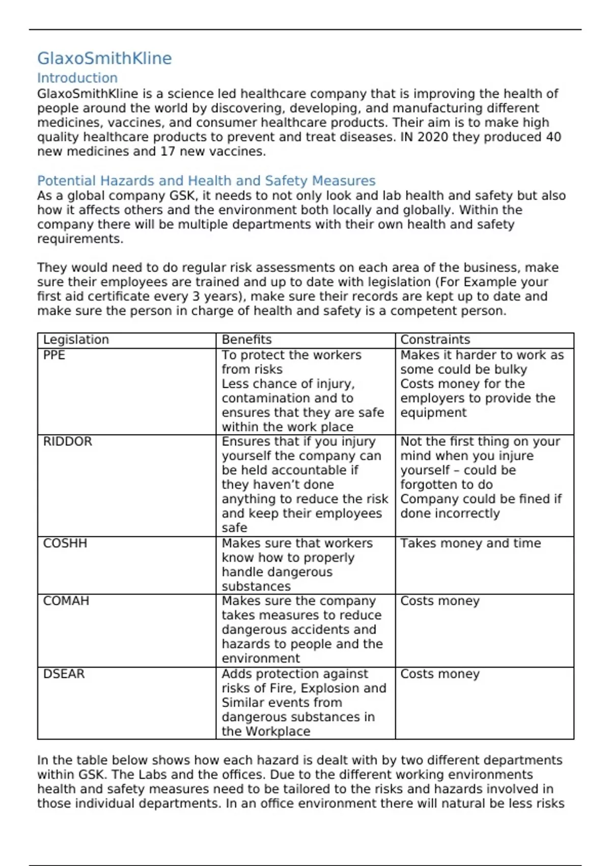 As a global company GSK, it needs to not only look and lab health and safety but also
