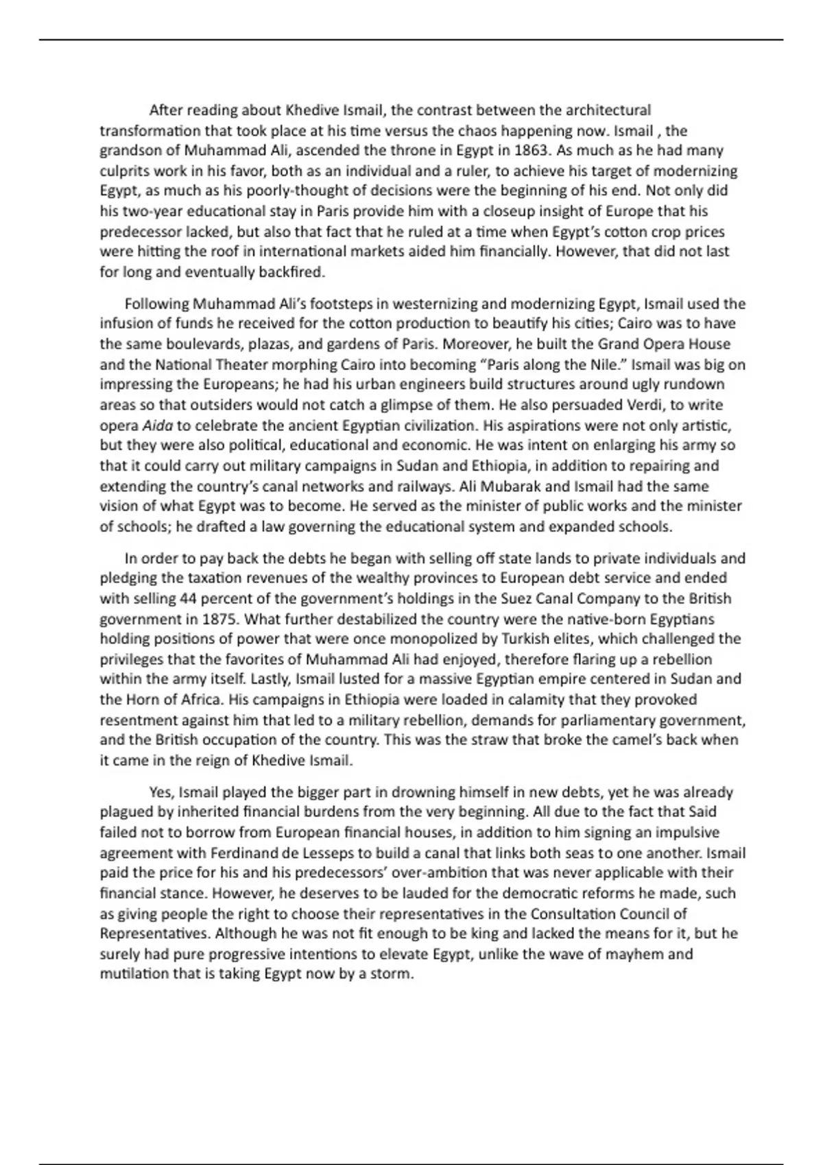 After reading about Khedive Ismail, the contrast between the architectural