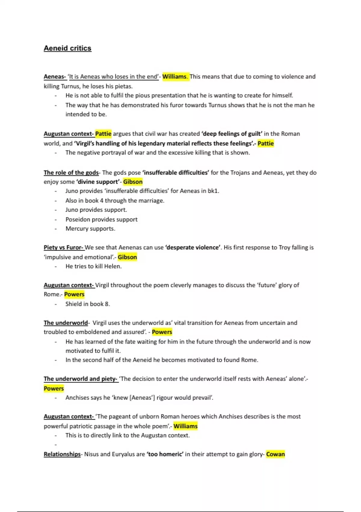 Aeneas- ‘It is Aeneas who loses in the end’- Williams. This means that due to coming to violence and