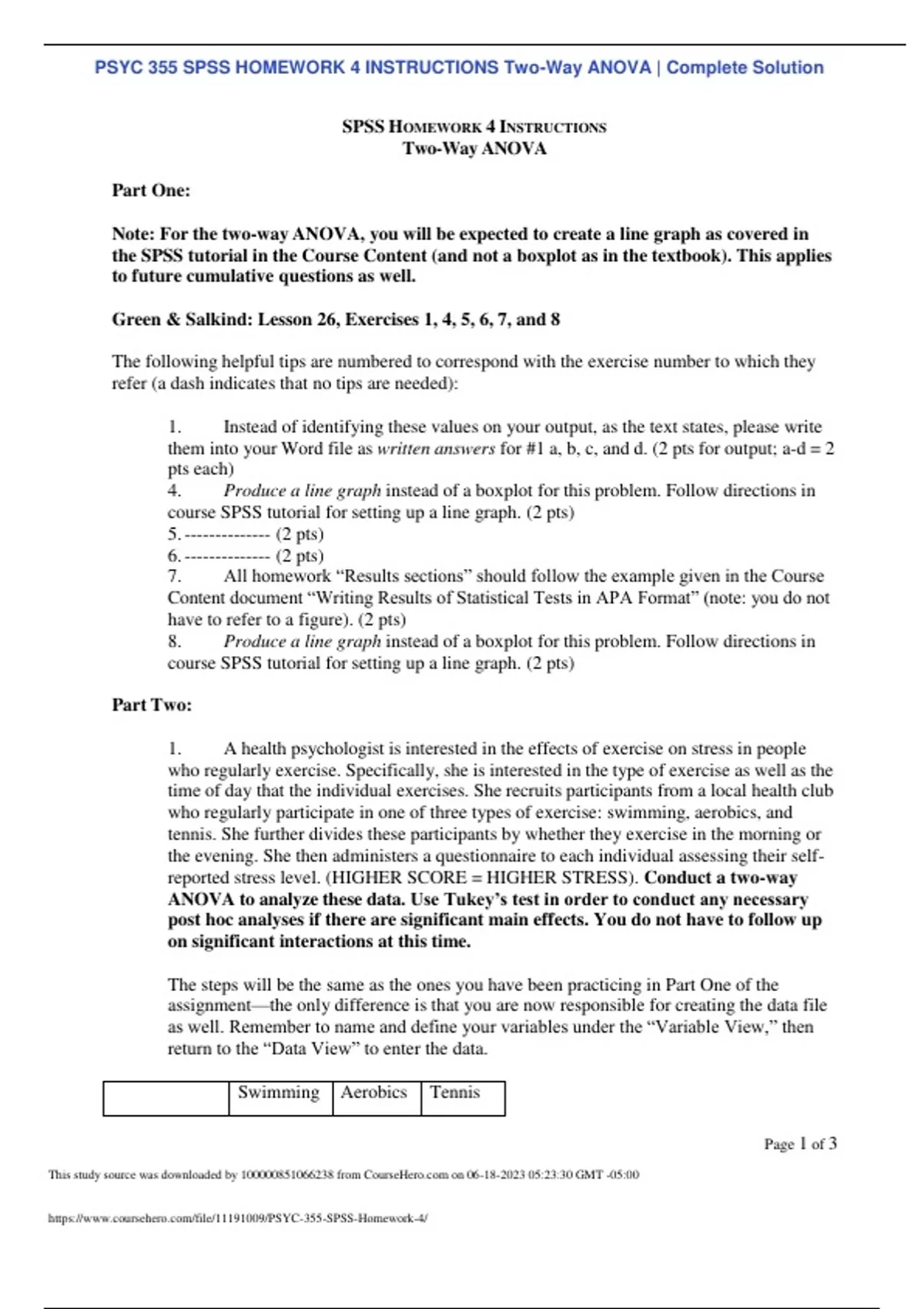 PSYC 355 SPSS HOMEWORK 4 INSTRUCTIONS Two-Way ANOVA Complete Solution