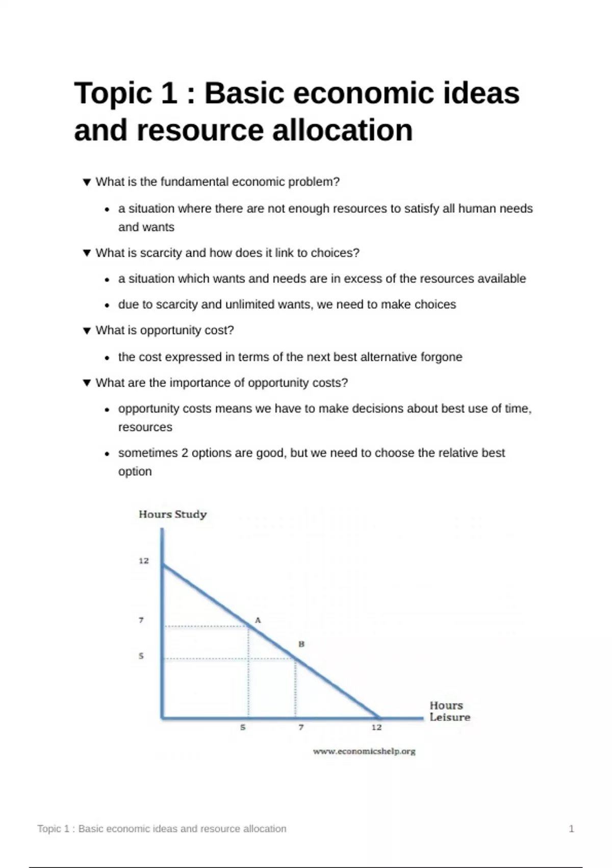 Topic 1 : Basic economic ideas and resource allocation 1