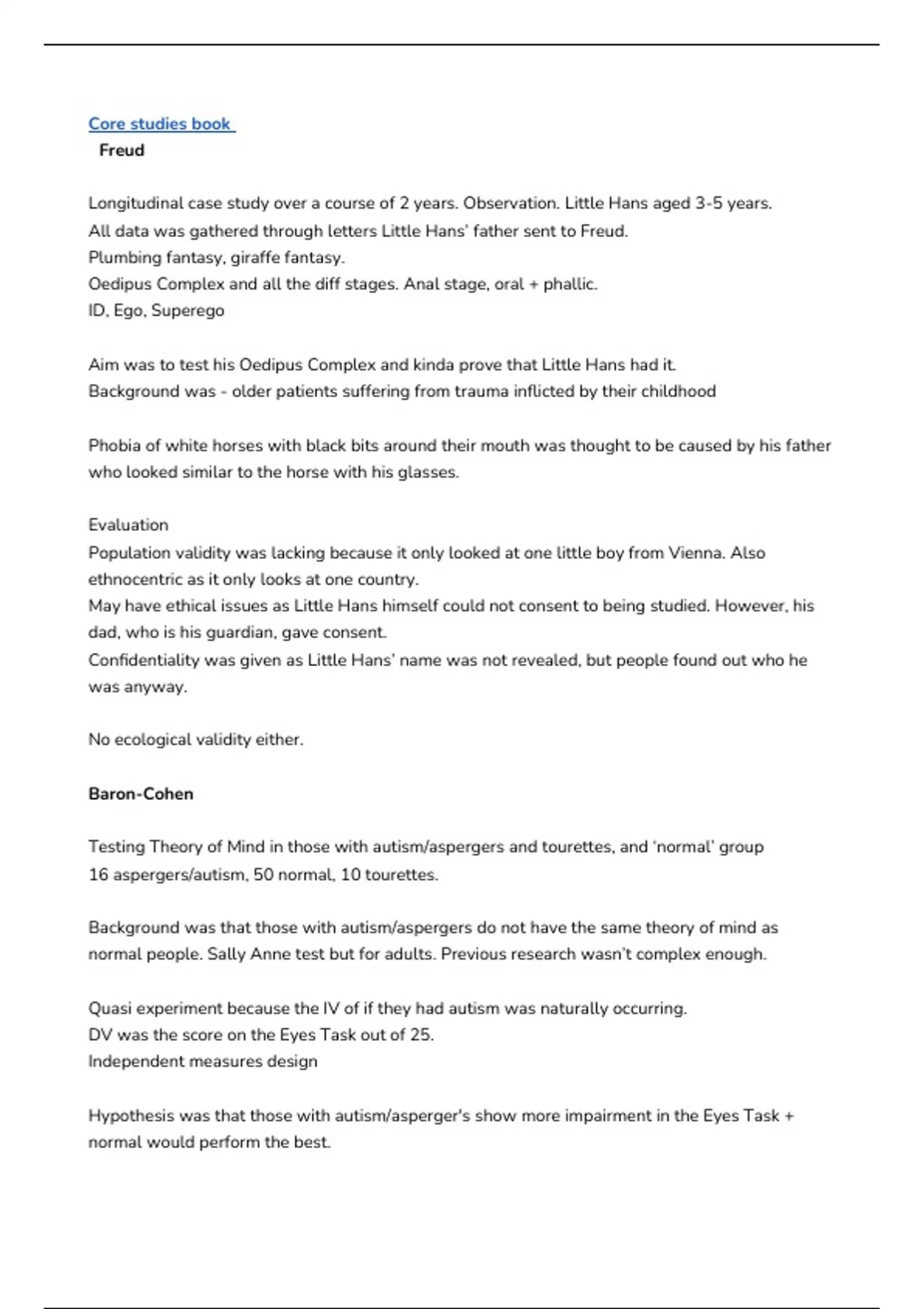 Aim was to test his Oedipus Complex and kinda prove that Little Hans had it.