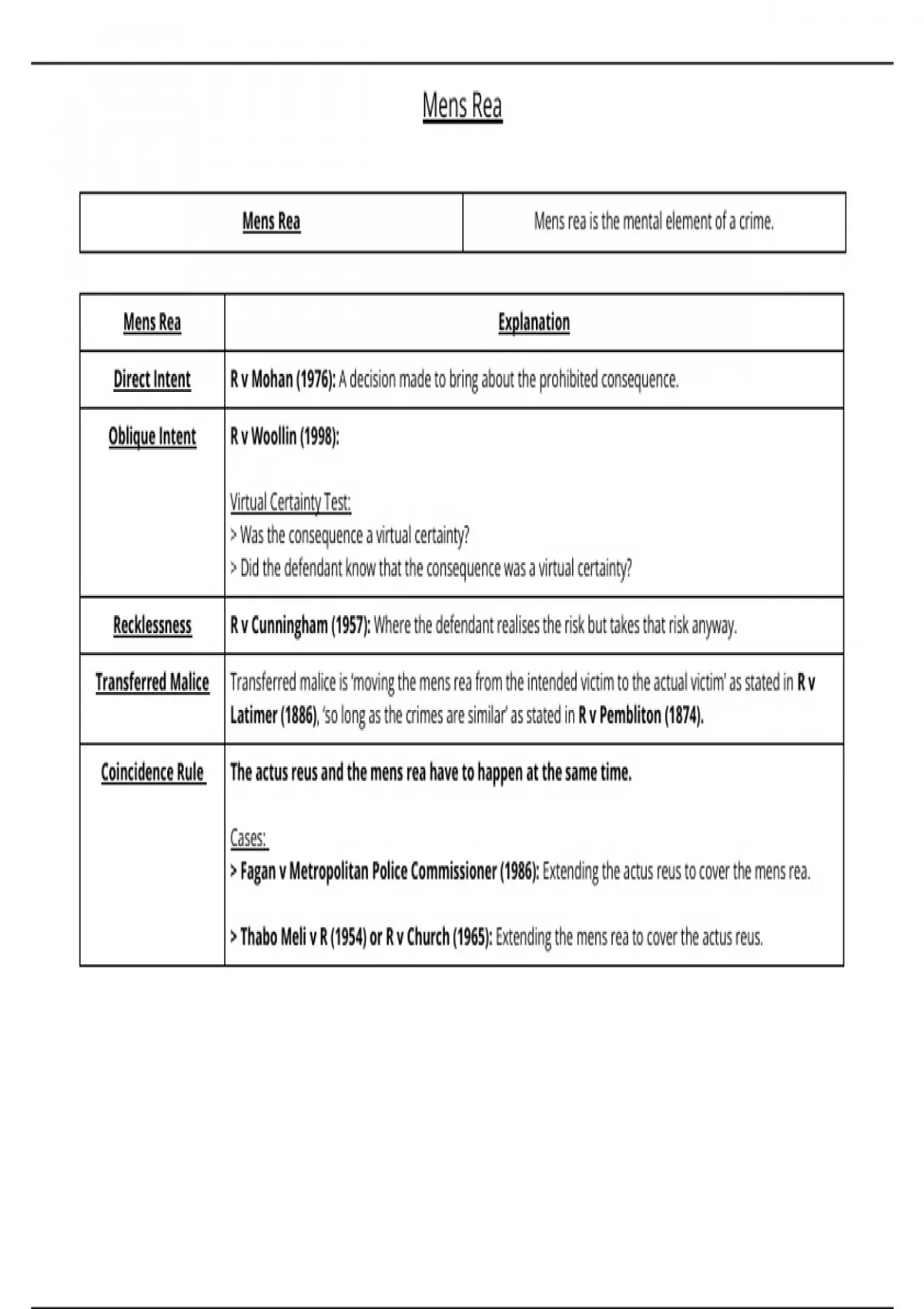 All of my law documents uploaded follow the AQA specification and are of A/A* quality. This mind map gives an overview of the Mens Rea of a crime.