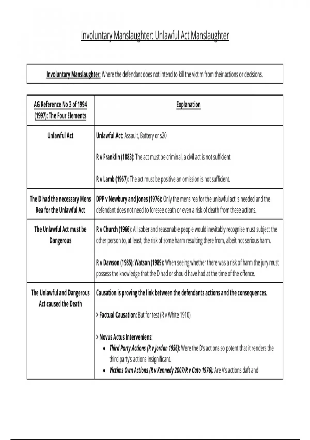 Involuntary Manslaughter: Unlawful Act Manslaughter