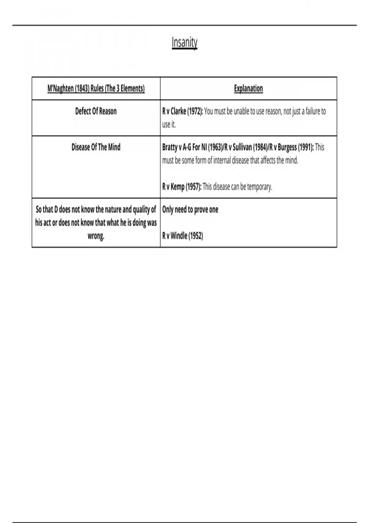 M’Naghten (1843) Rules (The 3 Elements) Explanation