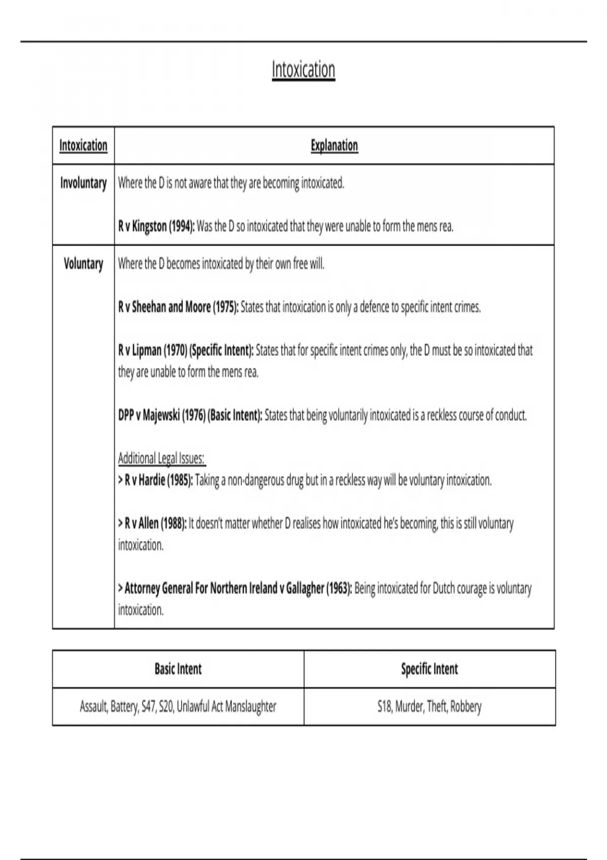 All of my law documents uploaded follow the AQA specification and are of A/A* quality. This mind map gives an overview of the elements of intoxication in criminal law.