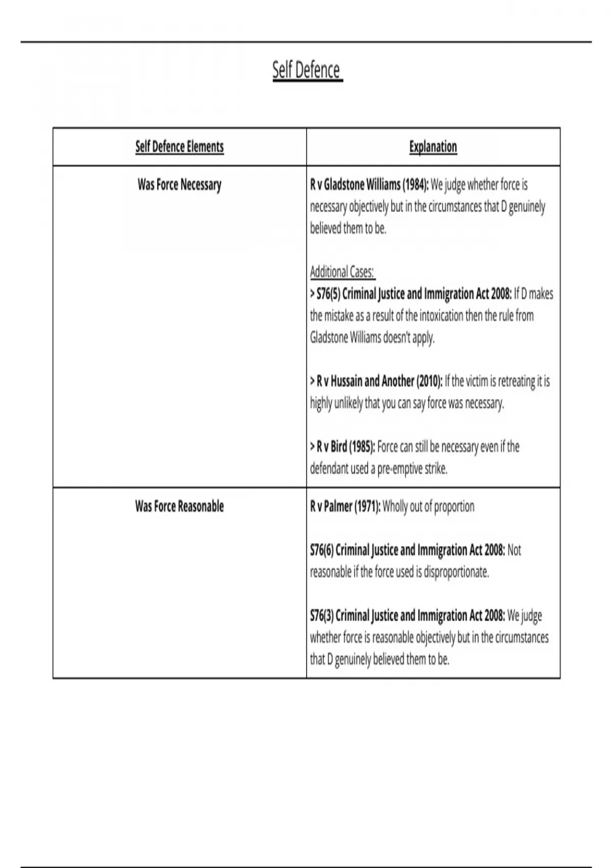 Criminal Law:Self Defence Mind Map (General Defences)