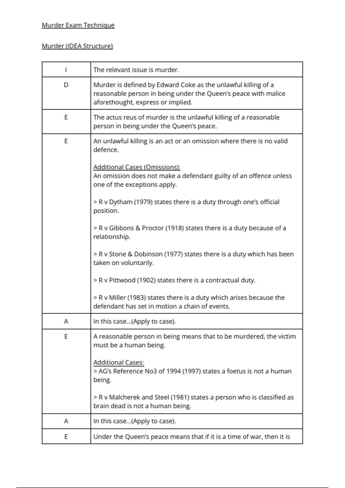E The actus reus of murder is the unlawful killing of a reasonable