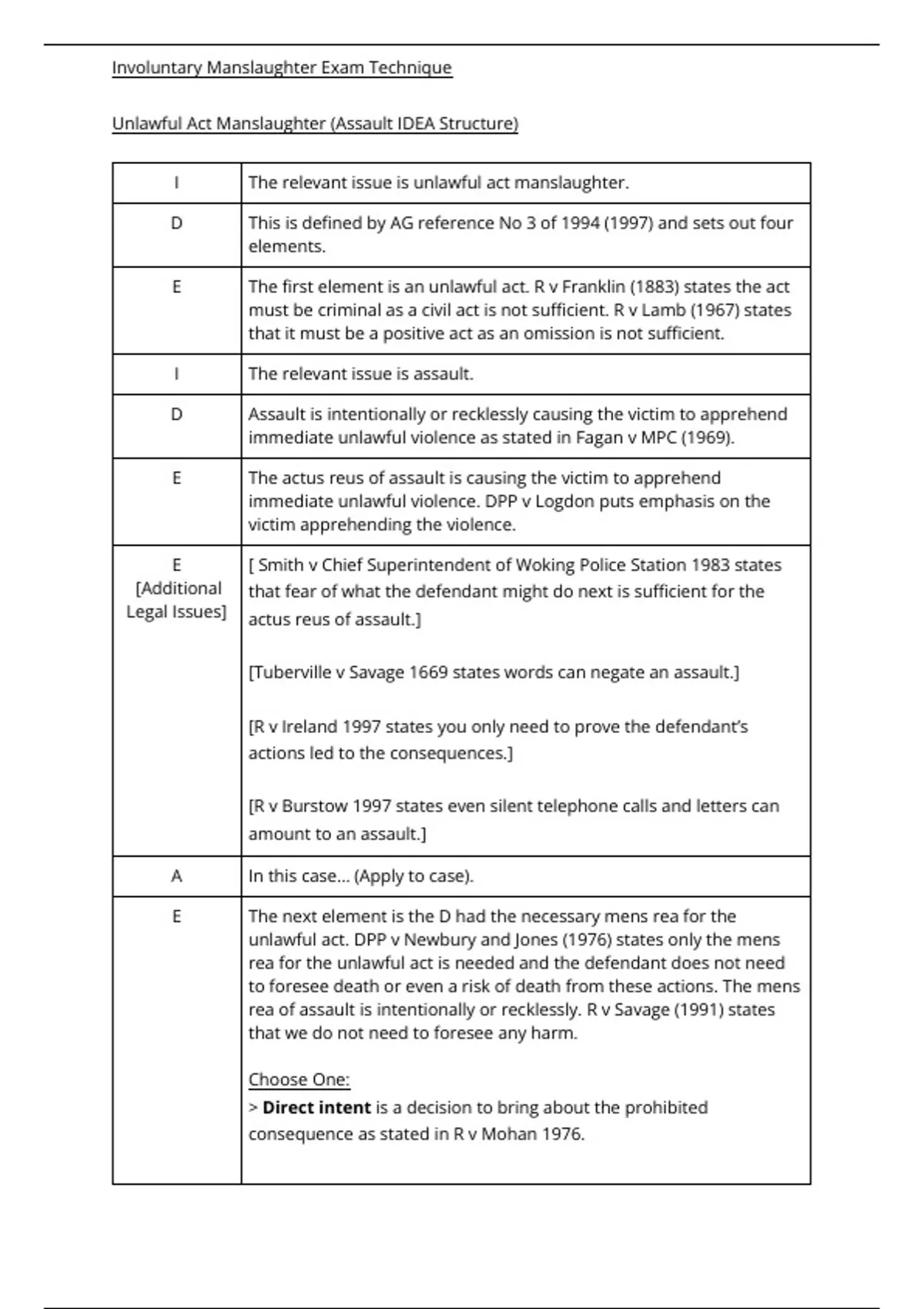 Unlawful Act Manslaughter (Assault IDEA Structure)