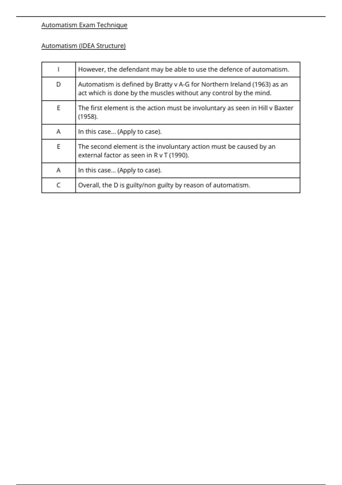 D Automatism is defined by Bratty v A-G for Northern Ireland (1963) as an