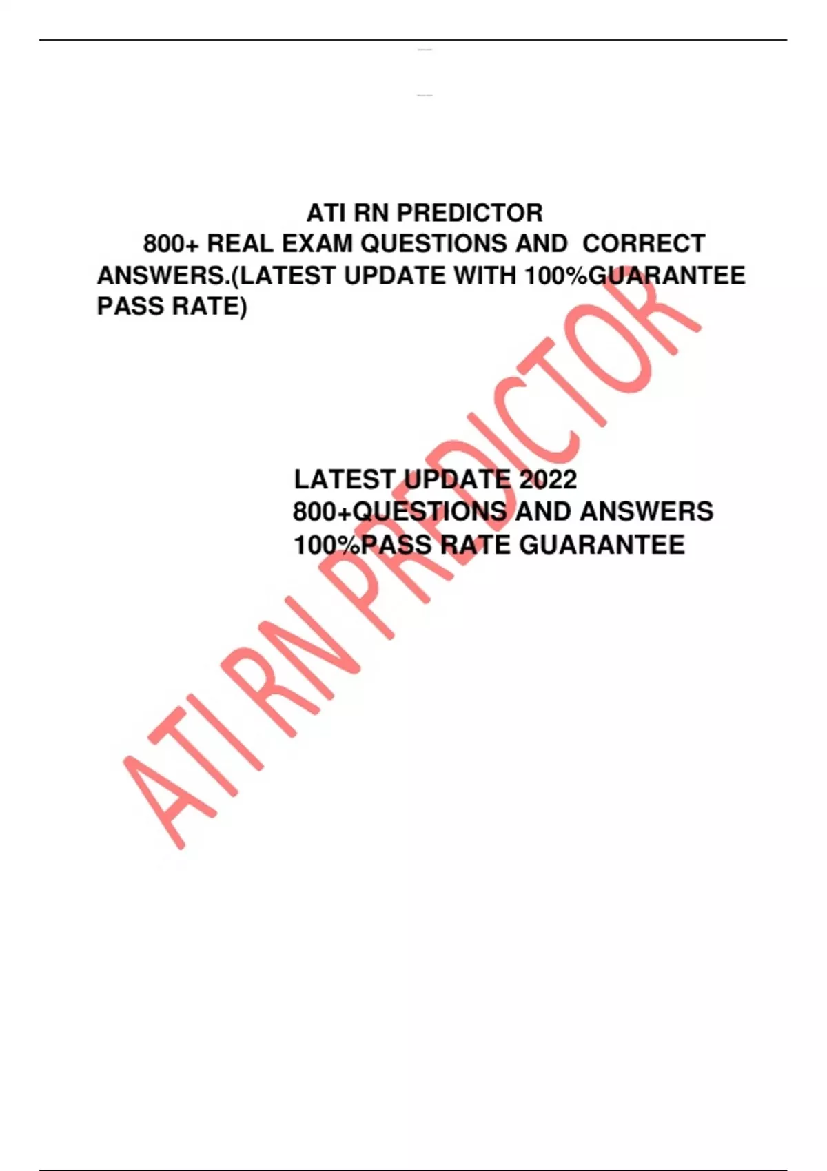 ATI RN PREDICTOR 800+ REAL EXAM QUESTIONS AND CORRECT ANSWERS.(LATEST UPDATE WITH 100%GUARANTEE