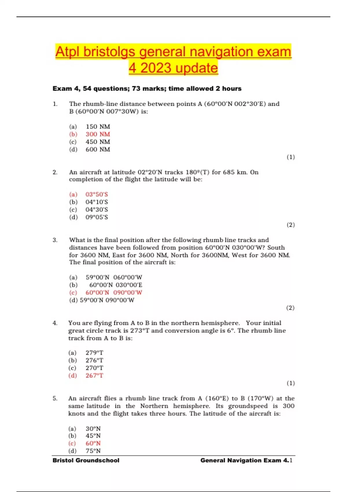 Bristol Groundschool General Navigation Exam 4.1