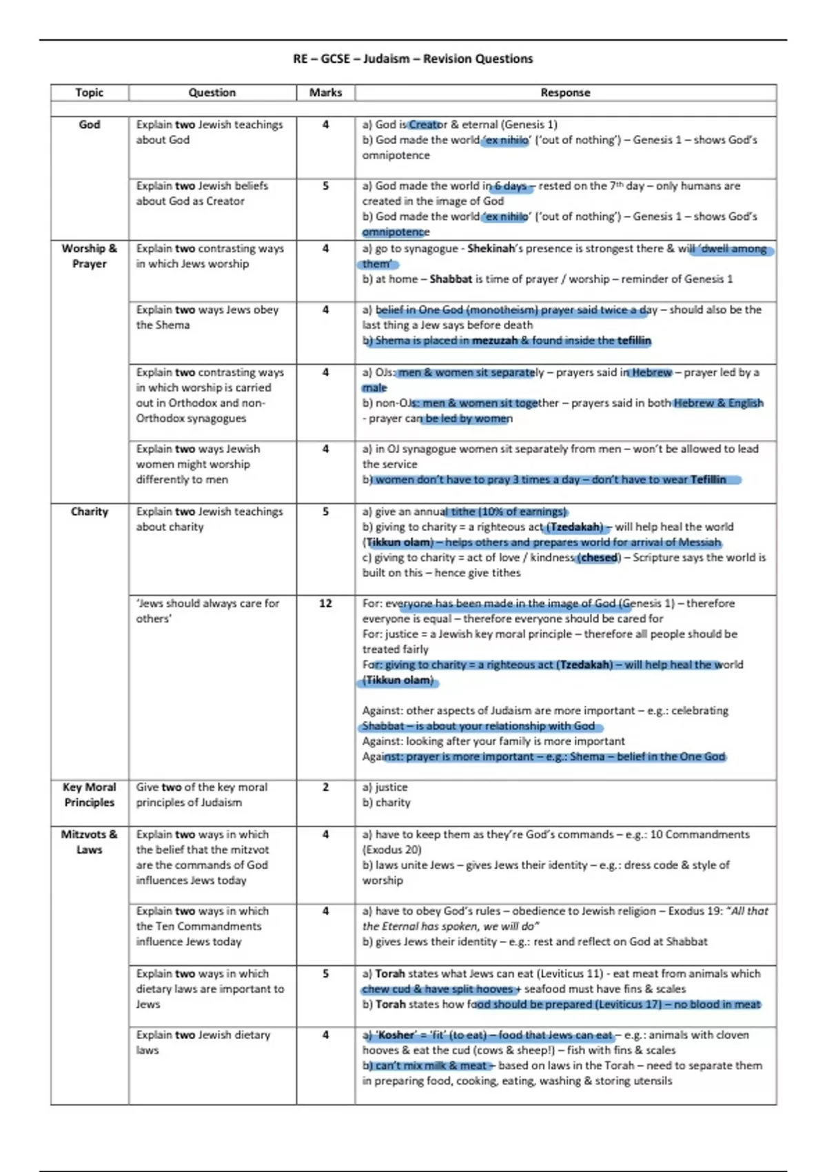 RE – GCSE – Judaism – Revision Questions
