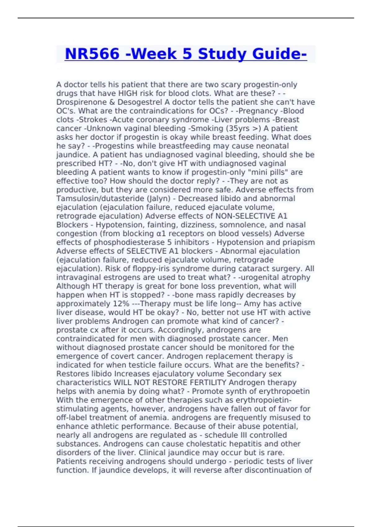 NR566 -Week 5 Study Guide-