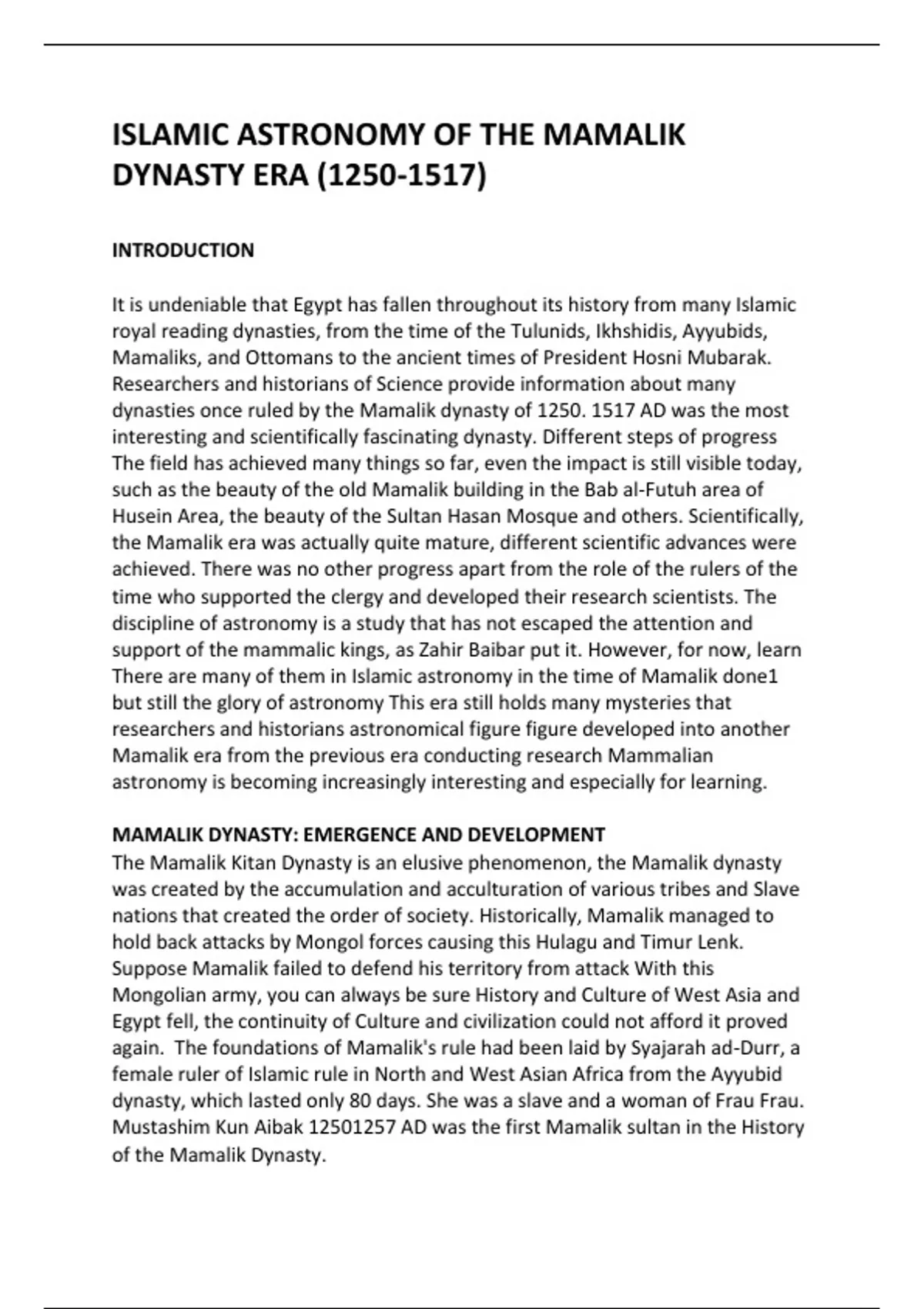MAMALIK DYNASTY: EMERGENCE AND DEVELOPMENT