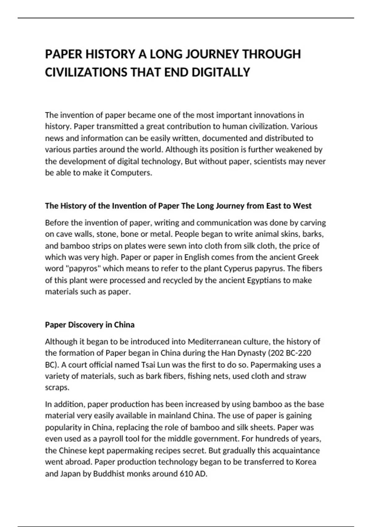 PAPER HISTORY A LONG JOURNEY THROUGH