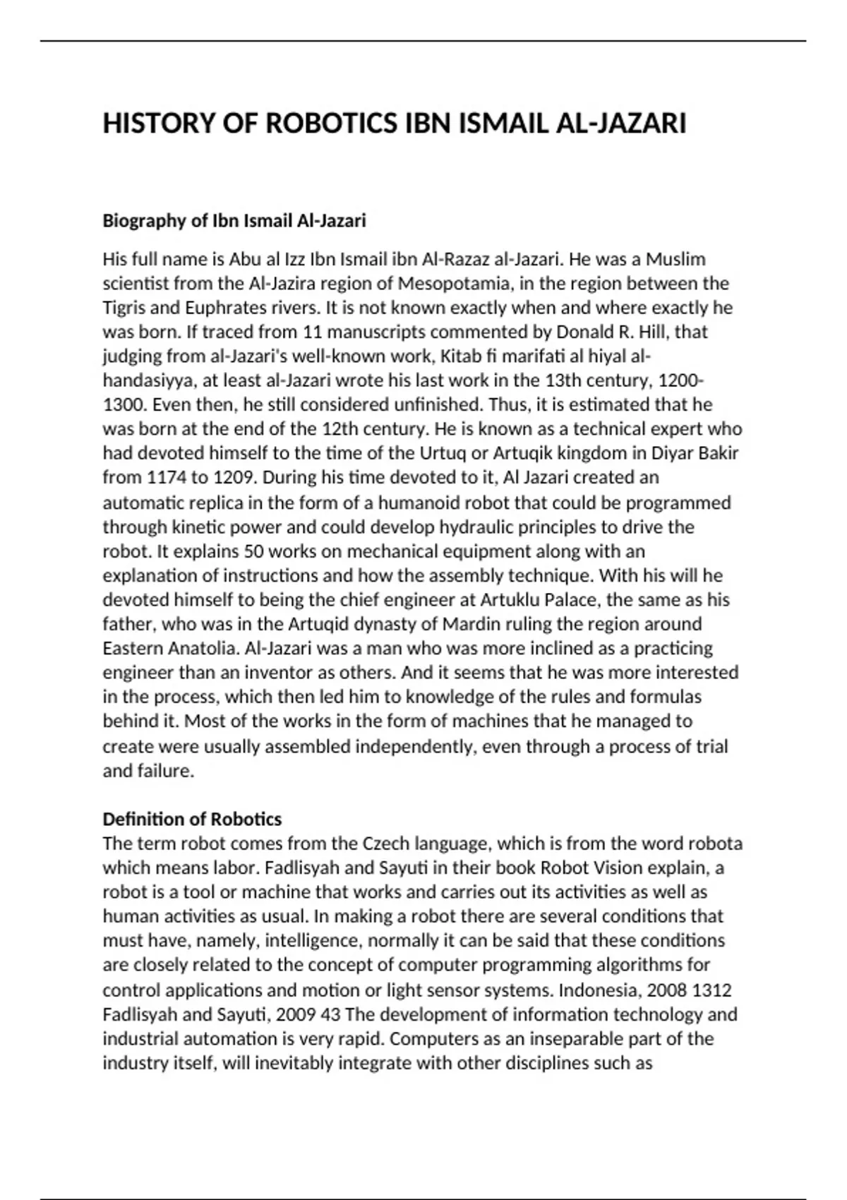 HISTORY OF ROBOTICS IBN ISMAIL AL-JAZARI