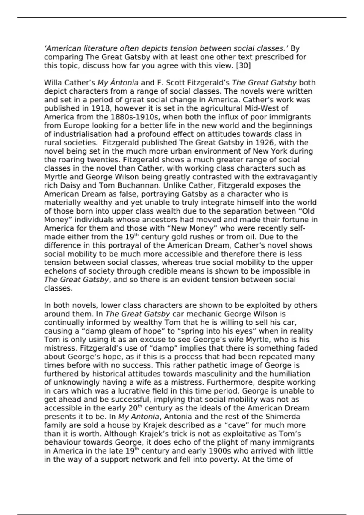 Willa Cather’s My Ántonia and F. Scott Fitzgerald’s The Great Gatsby both