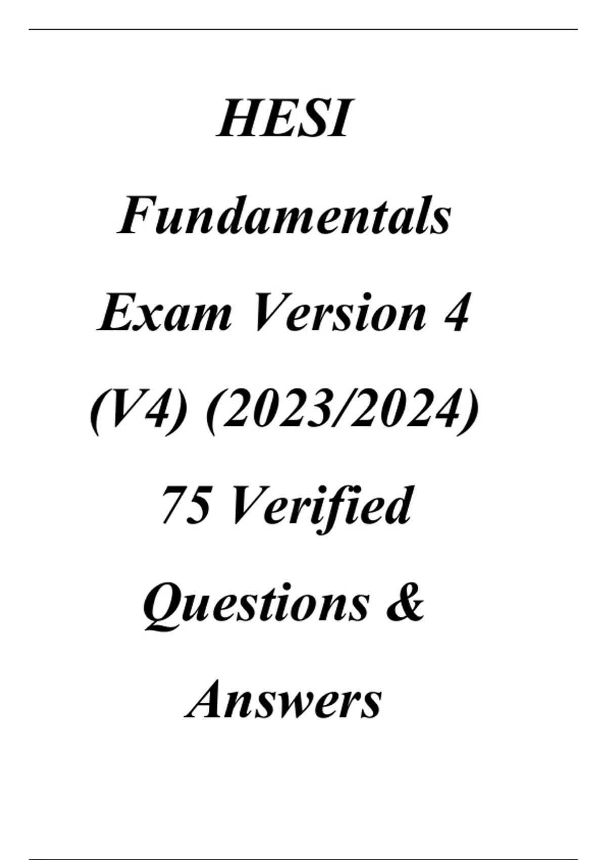 HESI Fundamentals Exam Version 4 (V4) () 75 Verified Questions & Answers