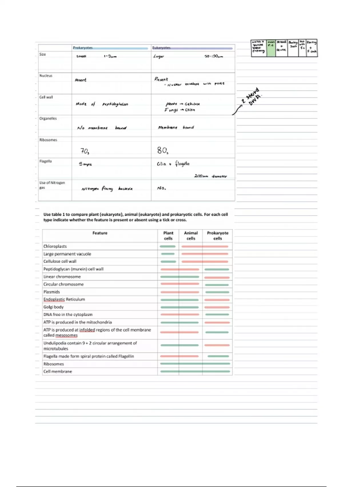 This is a simple to understand easy comparison table between prokaryotic and eukaryotic. It also includes a comparison table between animal and plant cells.