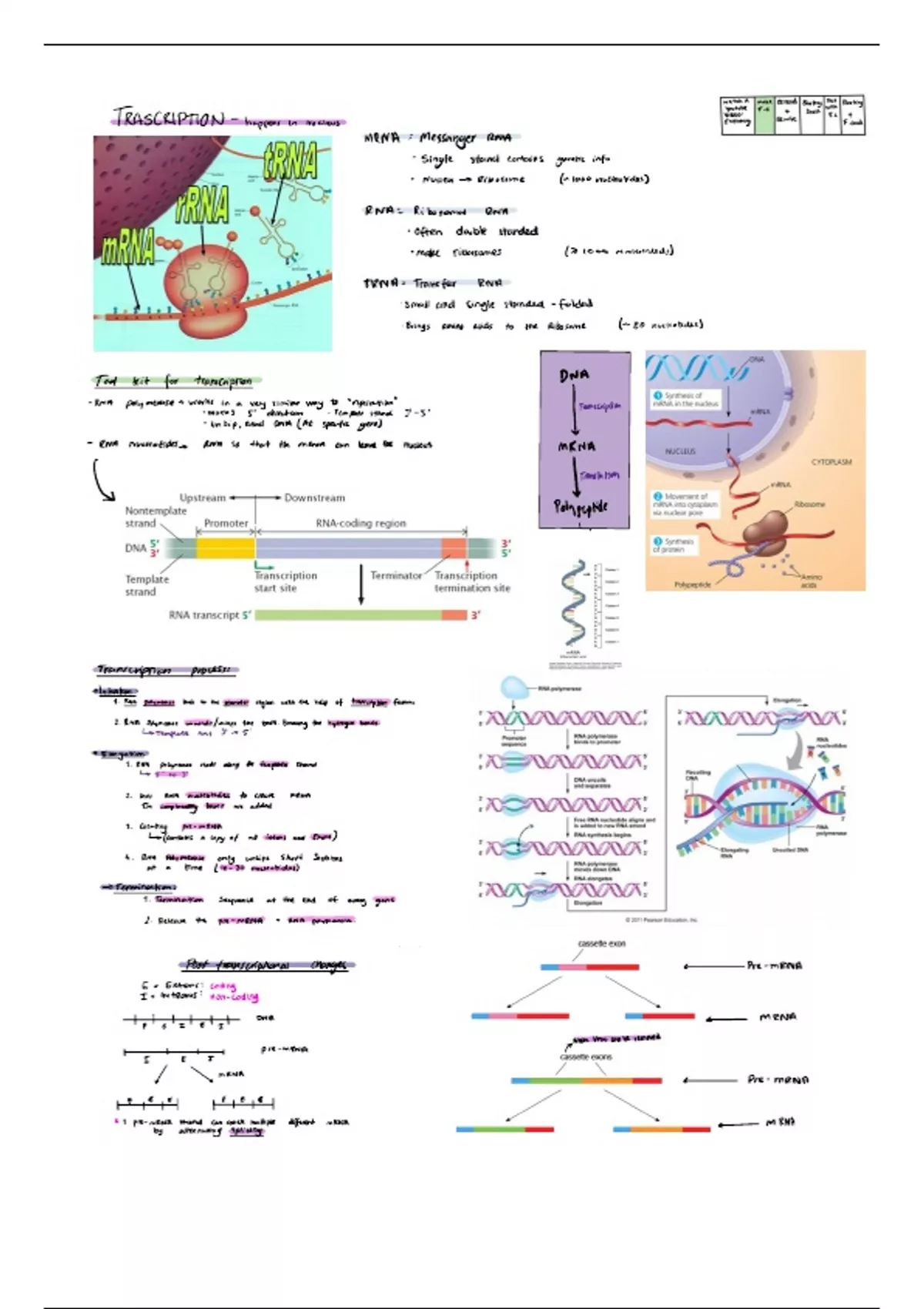 Rna nucleotides Rnasothatthemrna canleavethenucleus mRNA