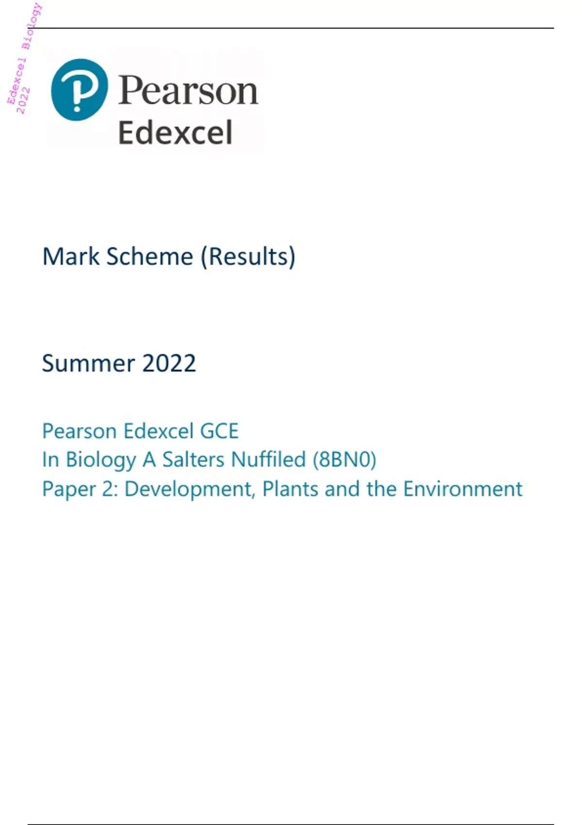 Edexcel AS Level 2022 Biology A (Salters Nuffield) PAPER 2: Development, Plants and the Environment Mark Scheme
