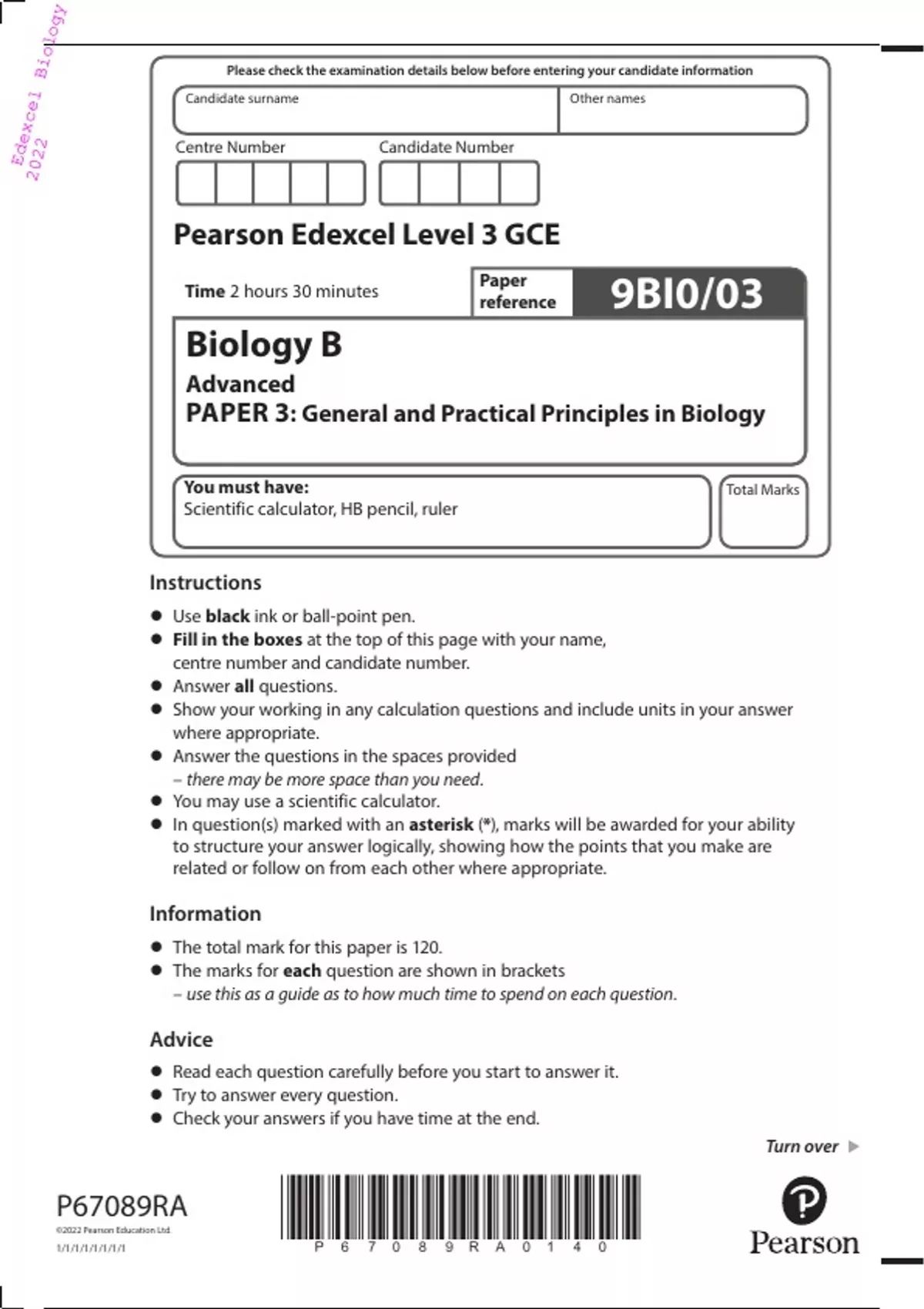 Edexcel A Level 2022 Biology B PAPER 3: General and Practical Principles in Biology