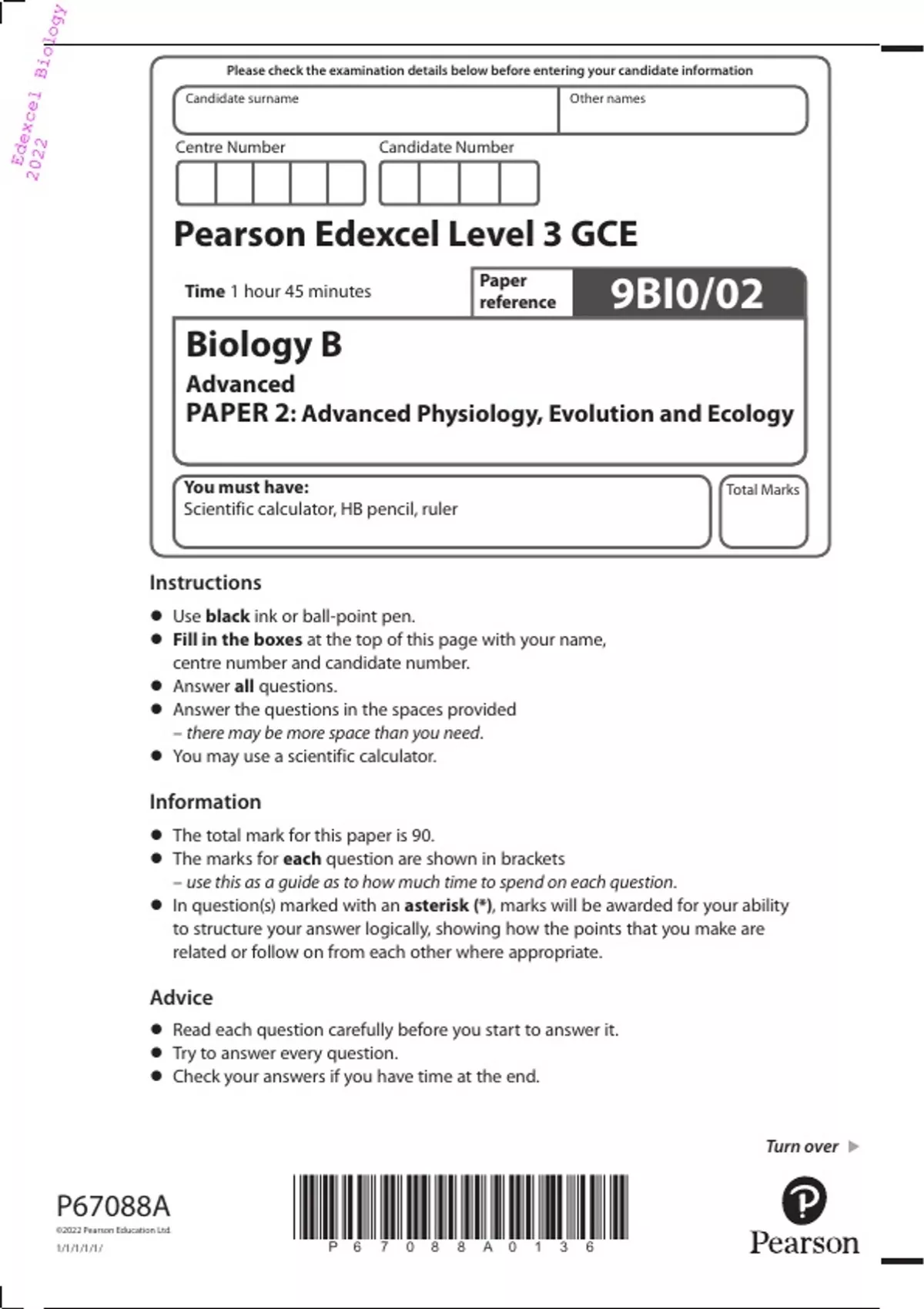 Edexcel A Level 2022 Biology B PAPER 2: Advanced Physiology, Evolution and Ecology
