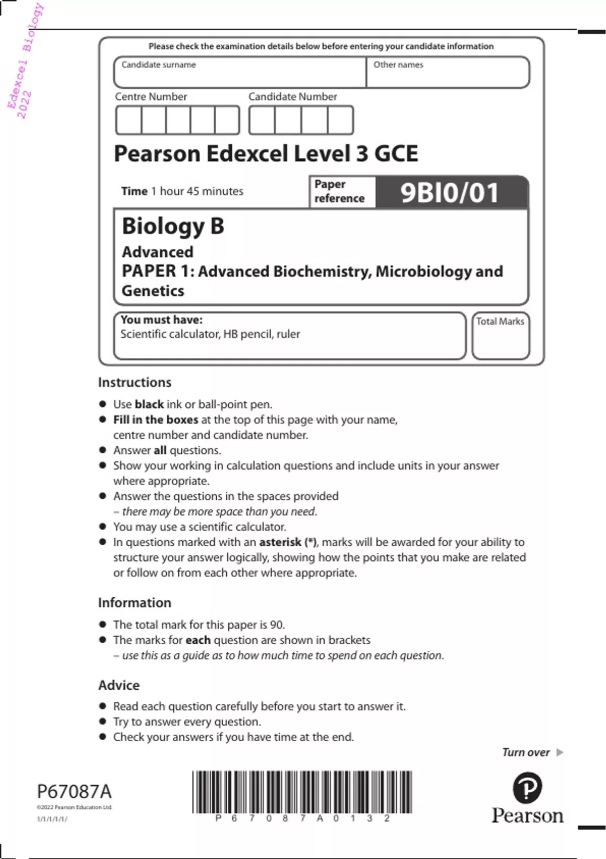 Edexcel A Level 2022 Biology B PAPER 1: Advanced Biochemistry, Microbiology and Genetics