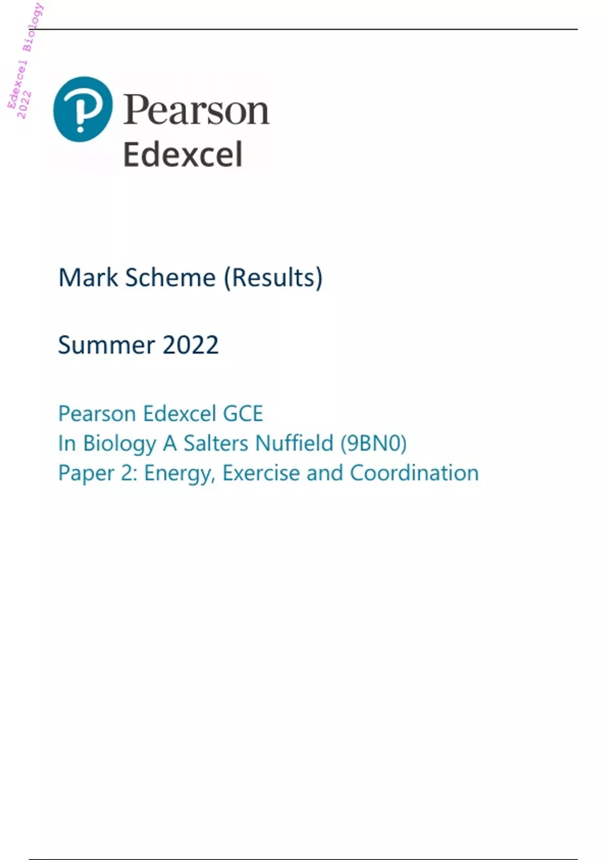 Edexcel A Level 2022 Biology A (Salters Nuffield) PAPER 2: Energy, Exercise and Co-ordination Mark Scheme