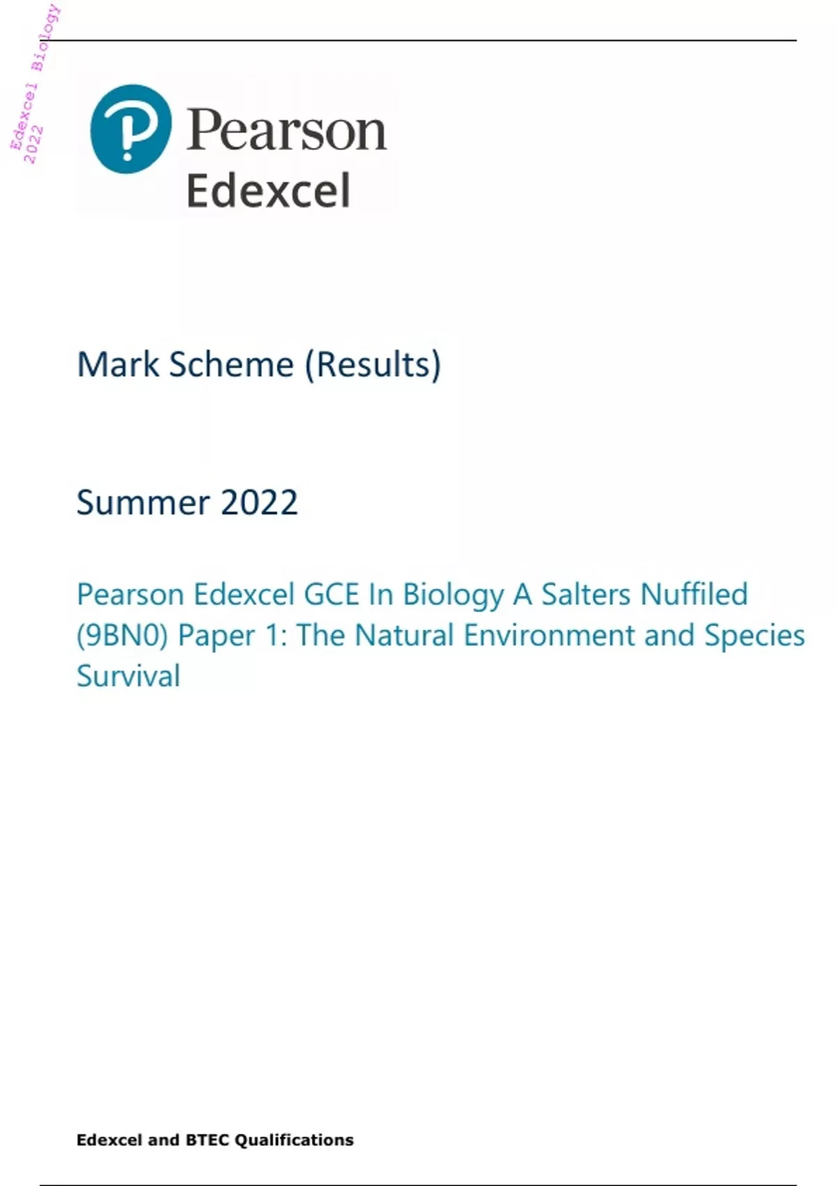Pearson Edexcel GCE In Biology A Salters Nuffiled