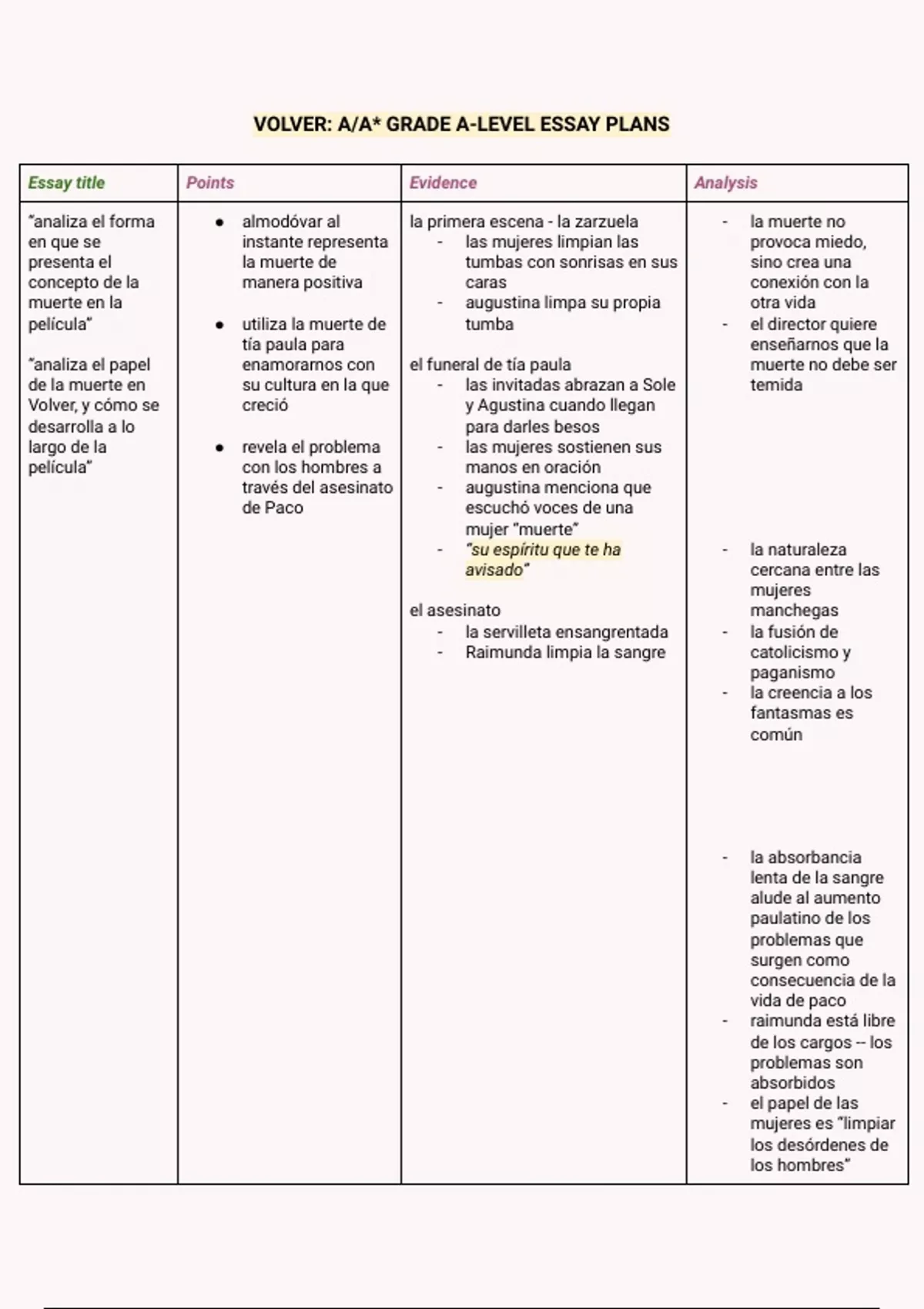 VOLVER: A/A* GRADE A-LEVEL ESSAY PLANS