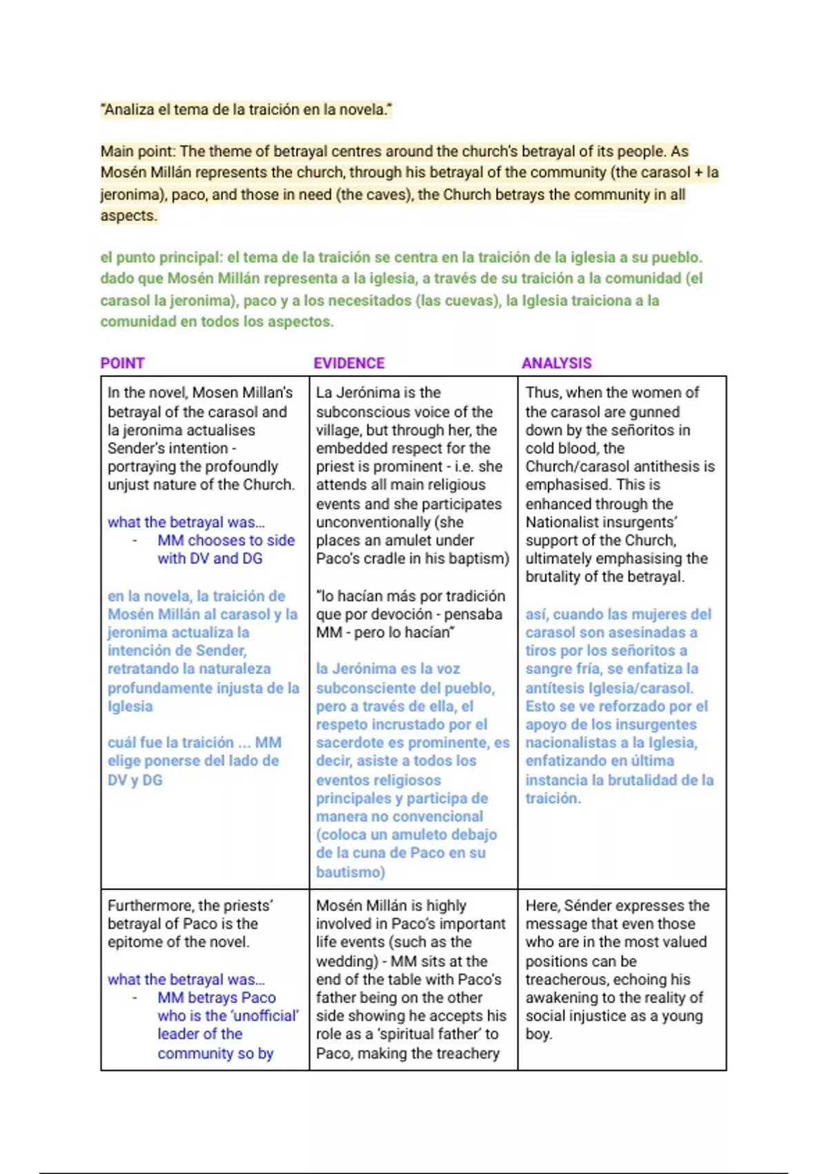 el punto principal: el tema de la traición se centra en la traición de la iglesia a su pueblo.