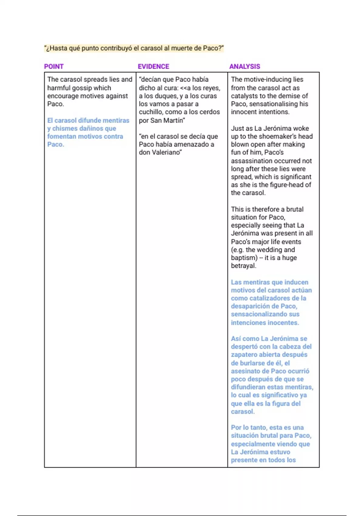 AN ESSAY PLAN I WISH WAS OFFERED TO ME WHEN I WAS STUDYING! This highly critical analysis on the role of the "carasol" in the melancholic death of Paco will GUARANTEE top marks in your Paper 2 essay! INCLUDES SPANISH + ENGLISH