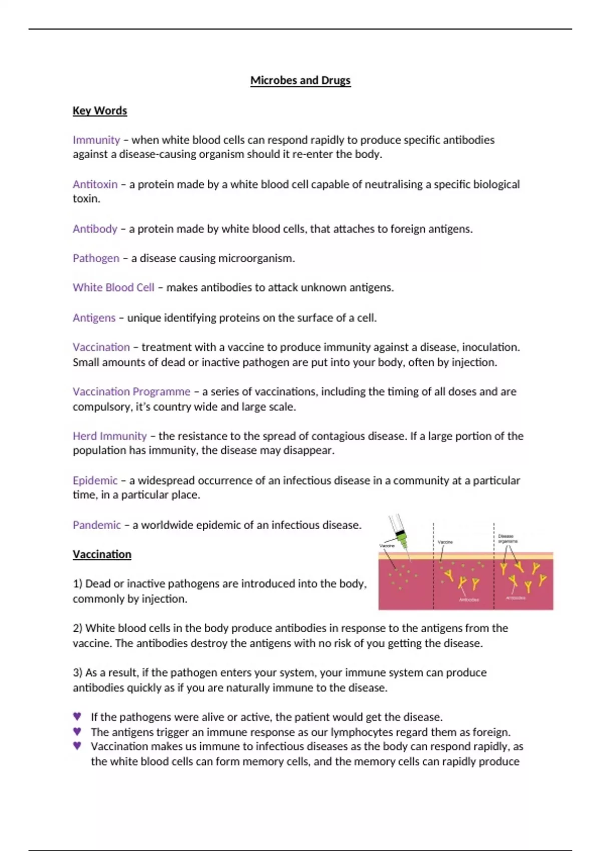 Summary notes on the GCSE topic Microbes and Drugs, specifically curated for the AQA GCSE Biology Course - Paper 1.