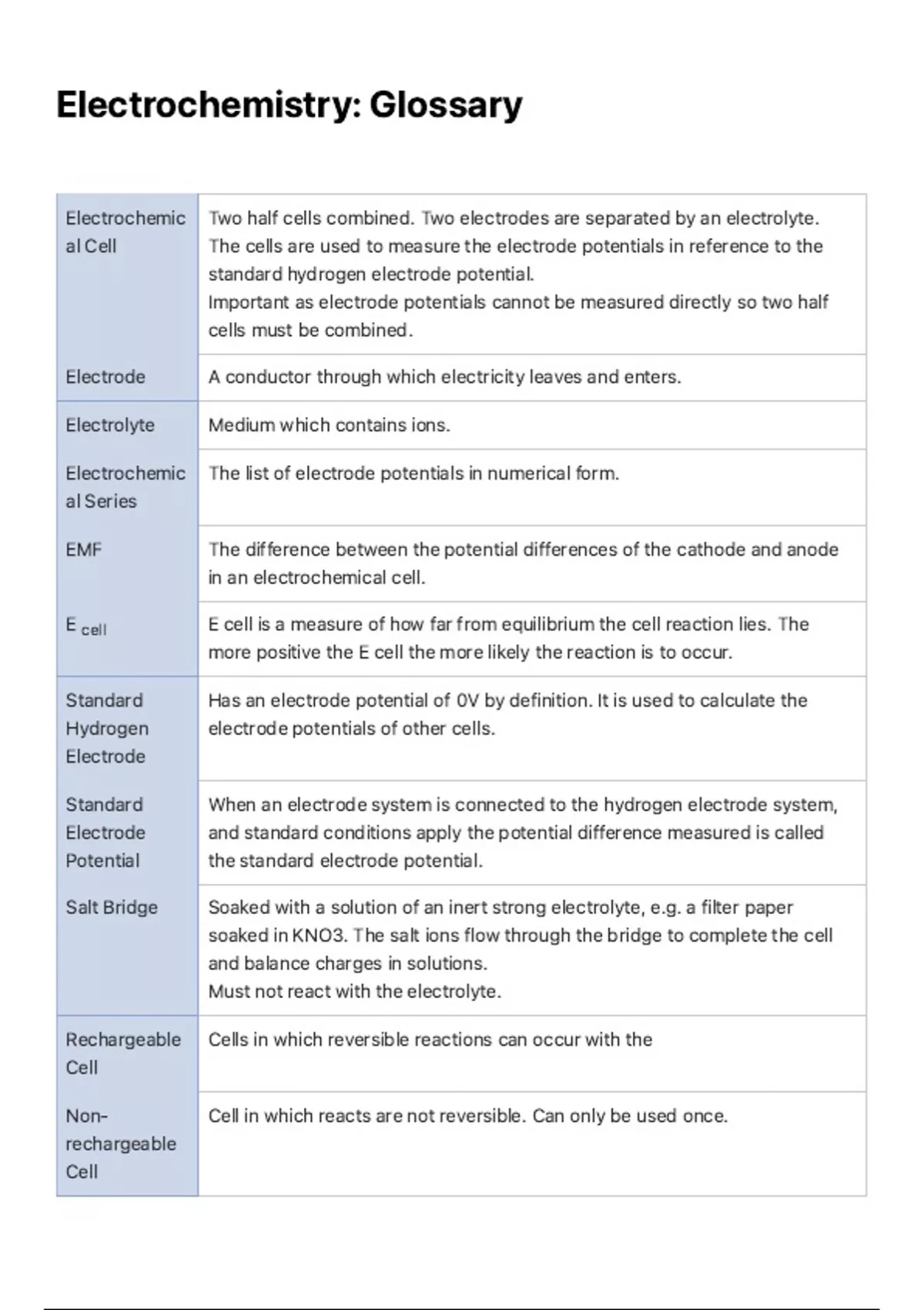 Electrochemic Two half cells combined. Two electrodes are separated by an electrolyte.