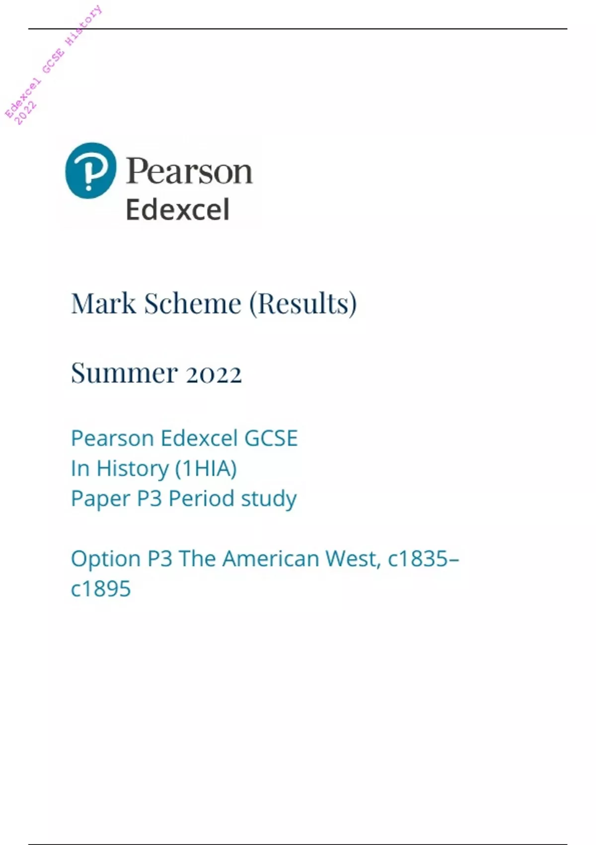 2022 Pearson Edexcel GCSE History PAPER 2: Option P3: The American West Mark Scheme