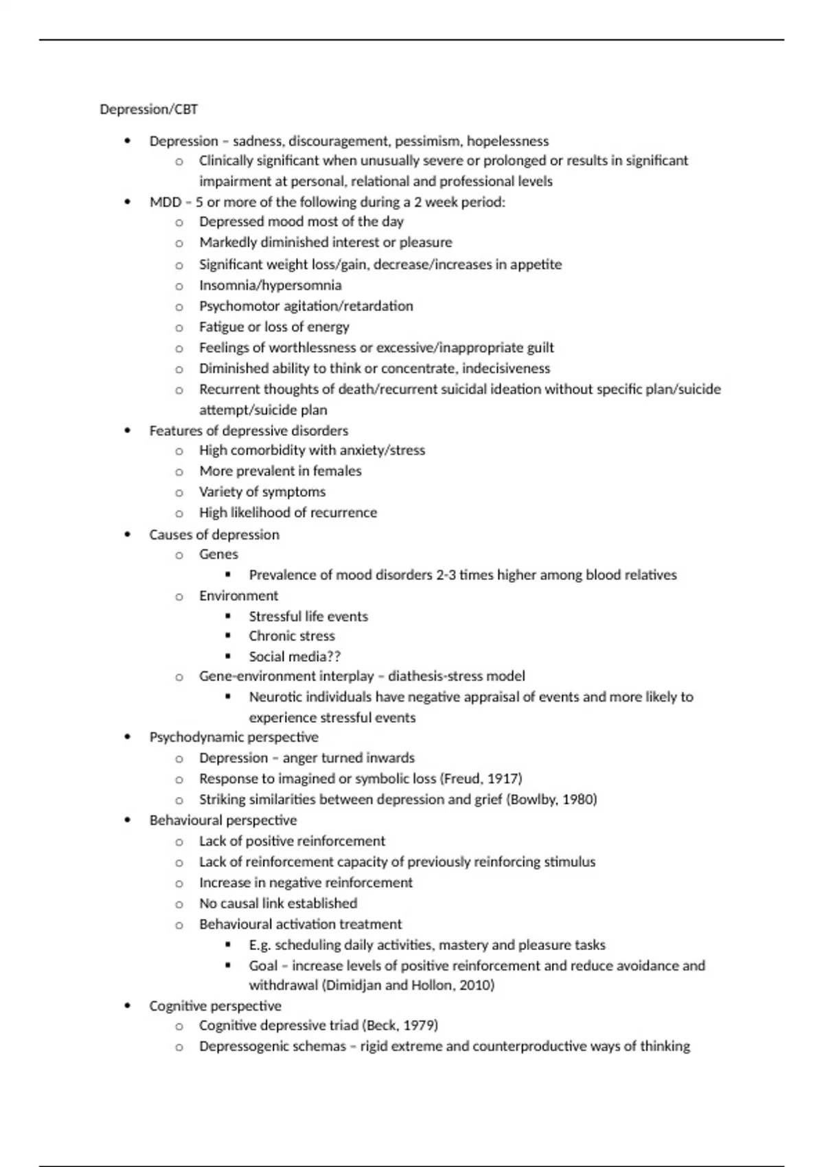 o Depressogenic schemas – rigid extreme and counterproductive ways of thinking