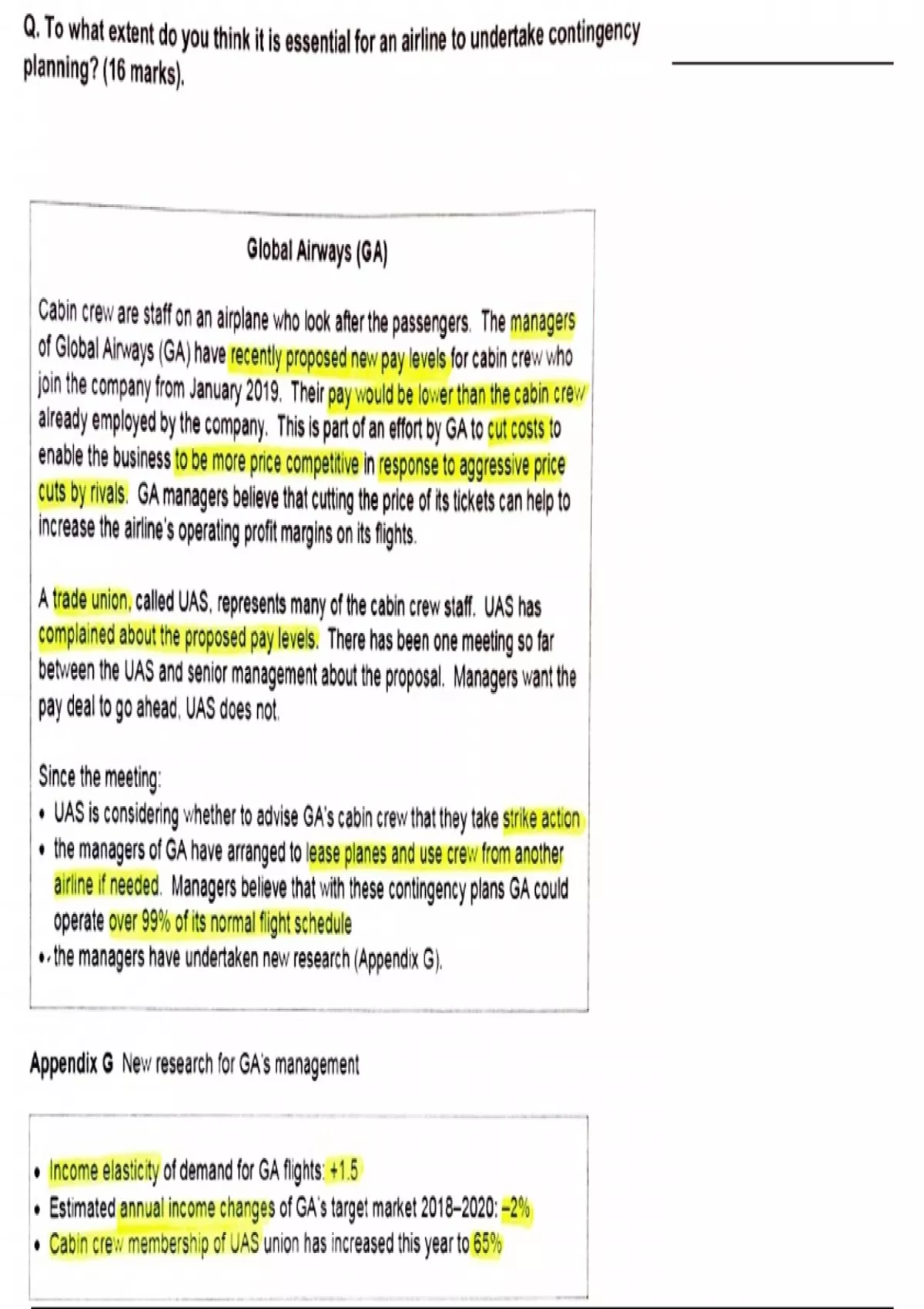 airline if needed. Managers believe that with these contingency plans GA could