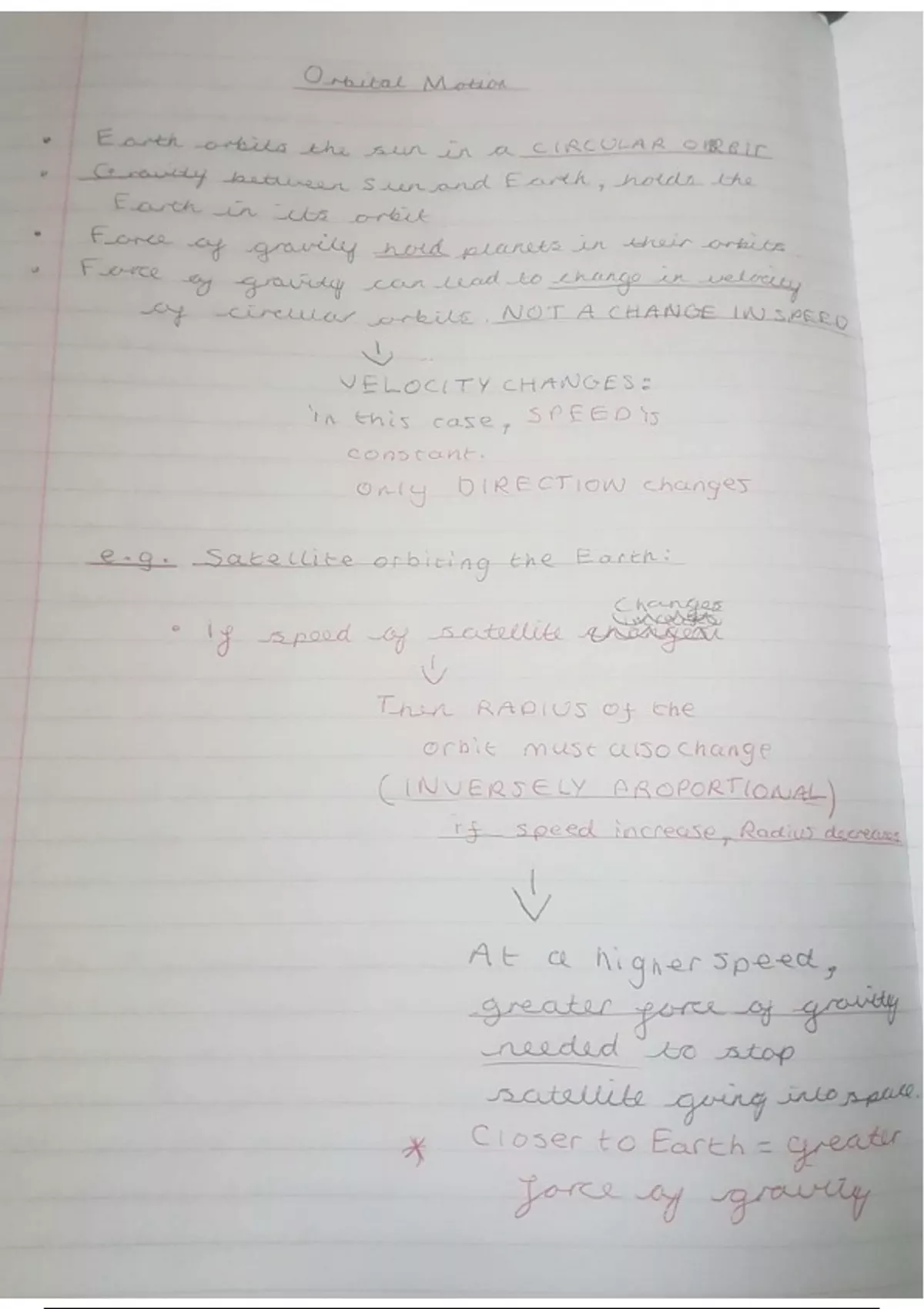 Summary GCSE AQA Science (Physics) - Orbital Motion