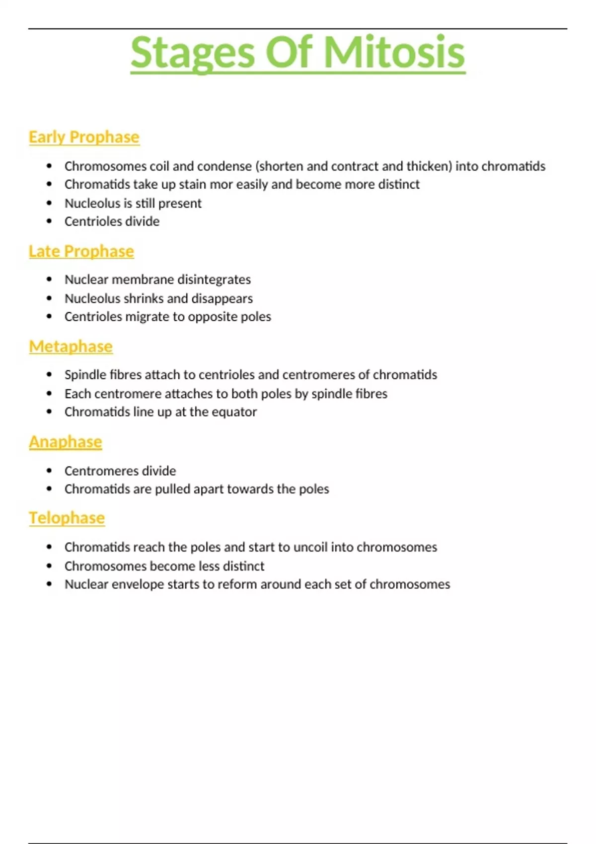 Summary OCR A/AS-Level Biology 2.6.2 Stages of Mitosis