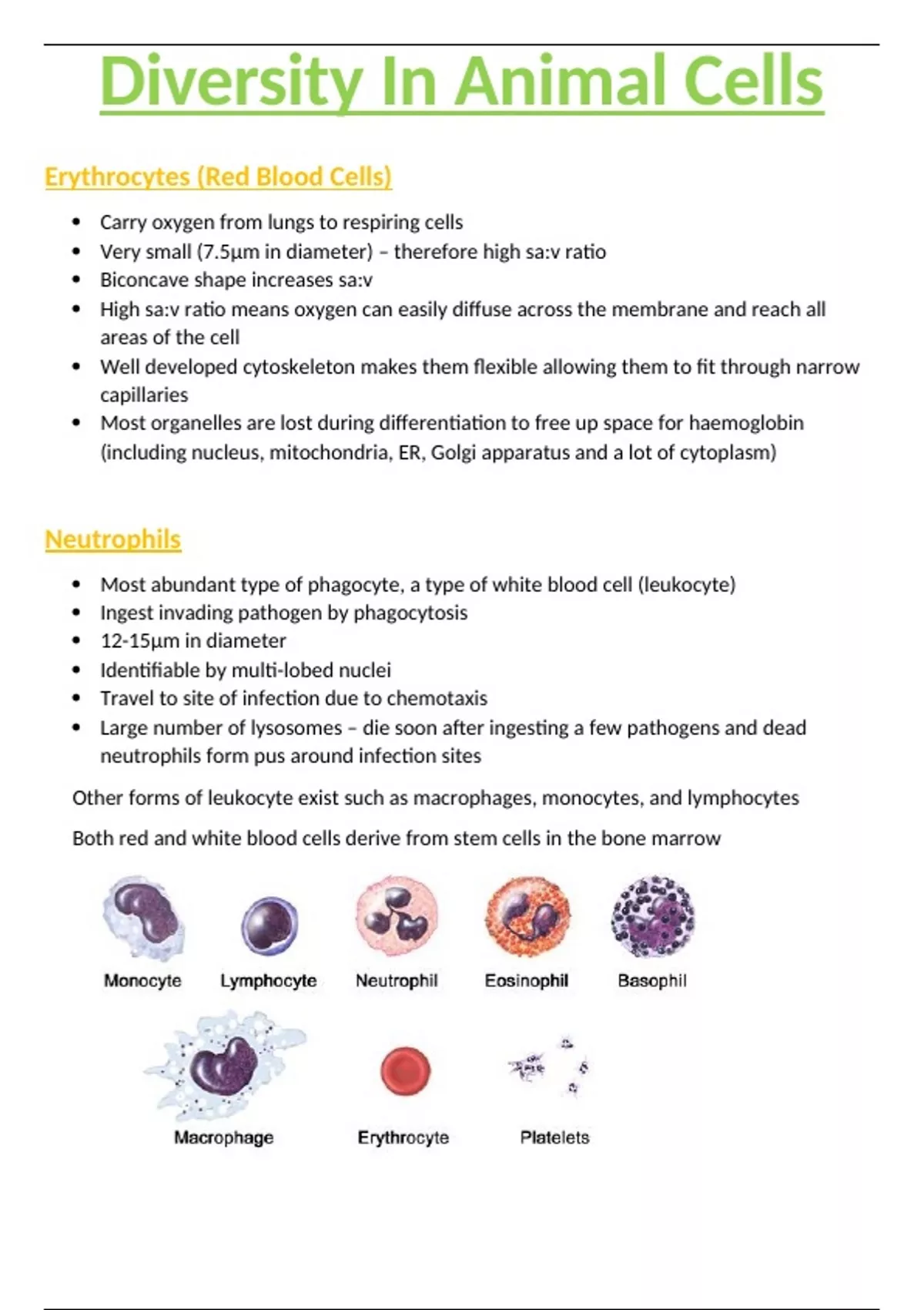 Summary OCR A/AS-Level Biology 2.6.4 Diversity in Animal Cells