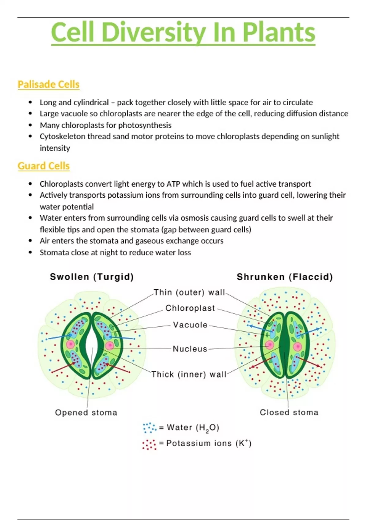 Summary OCR A/AS-Level Biology 2.6.5 Diversity in Plant Cells