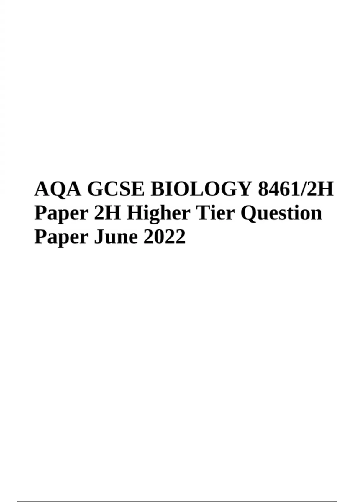 AQA GCSE BIOLOGY 8461/2H Paper 2H Higher Tier Question Paper June 2022