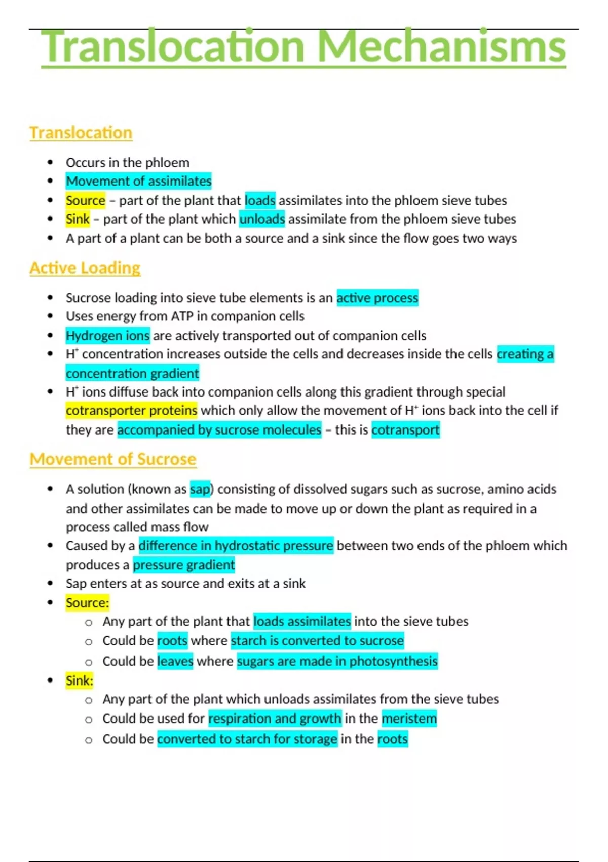 Summary OCR A/AS-Level Biology 3.3.7 Translocation Mechanisms